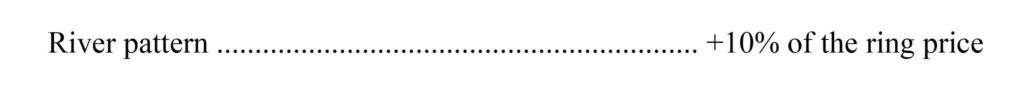 The damascus patterns listed in the “Ring Pattern Guide” section are all priced the same – except for one. That exception is the River pattern, which is significantly more complex to forge and results in greater material loss, and therefore comes with a surcharge.