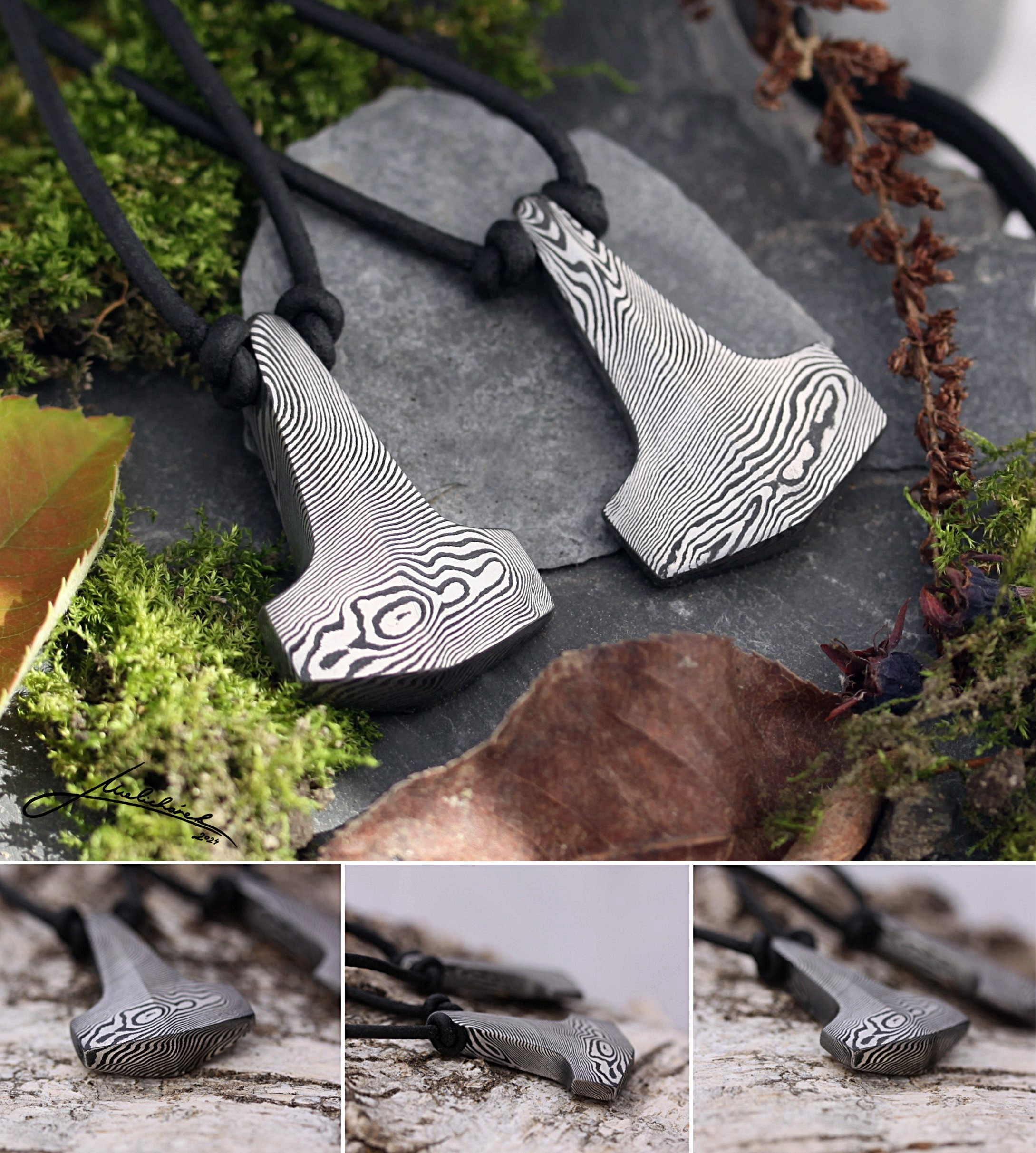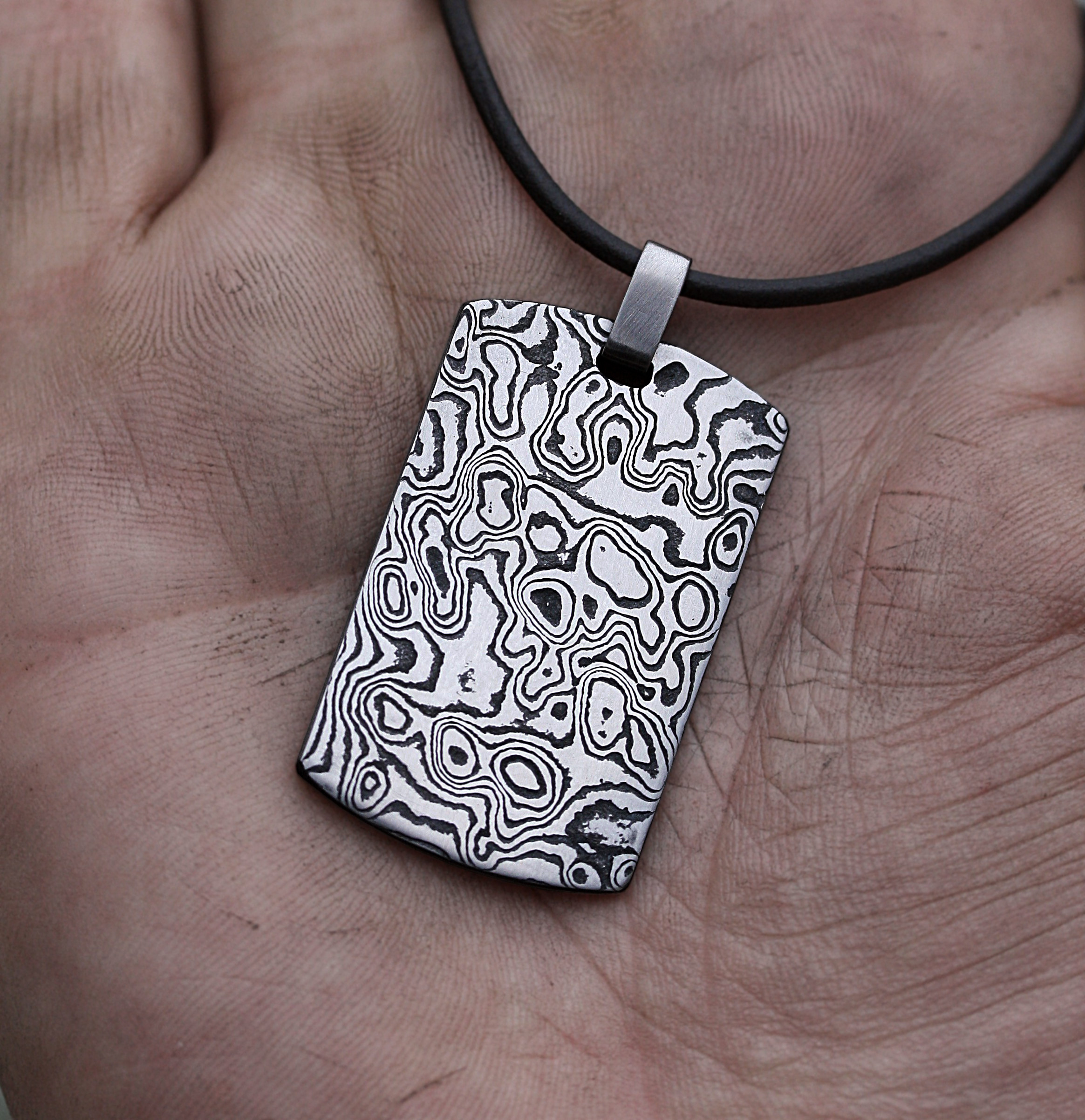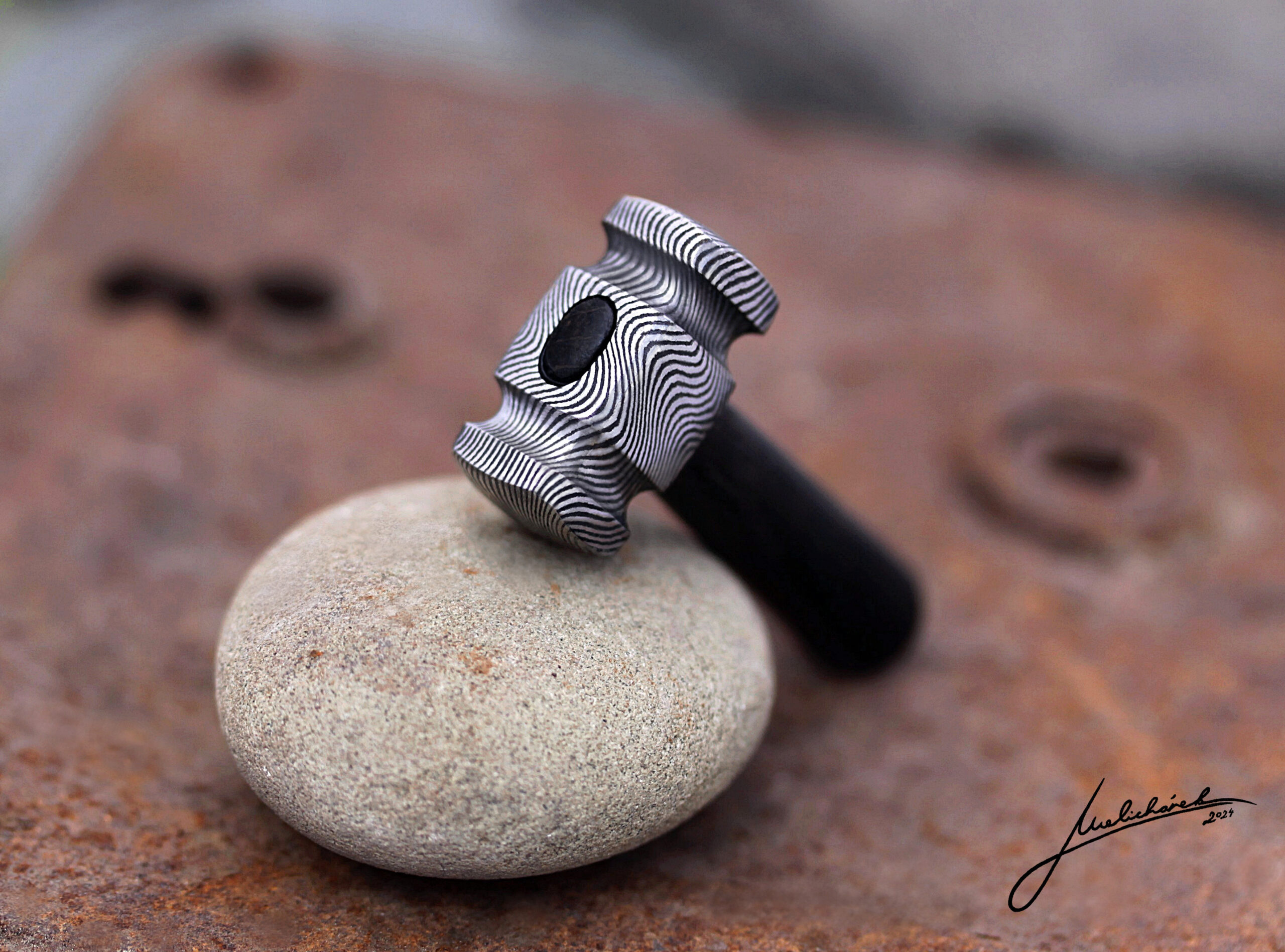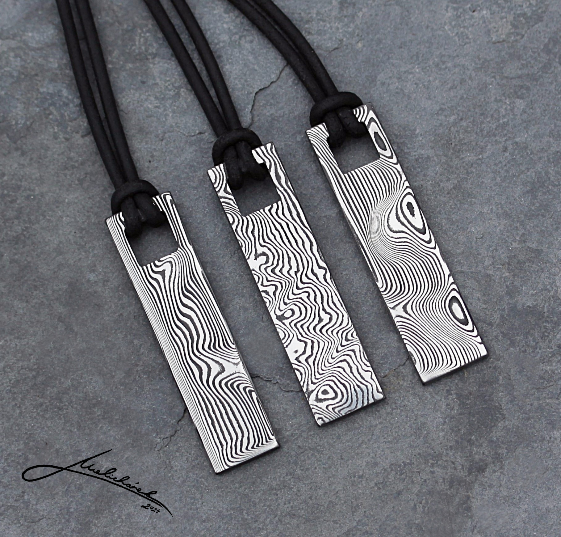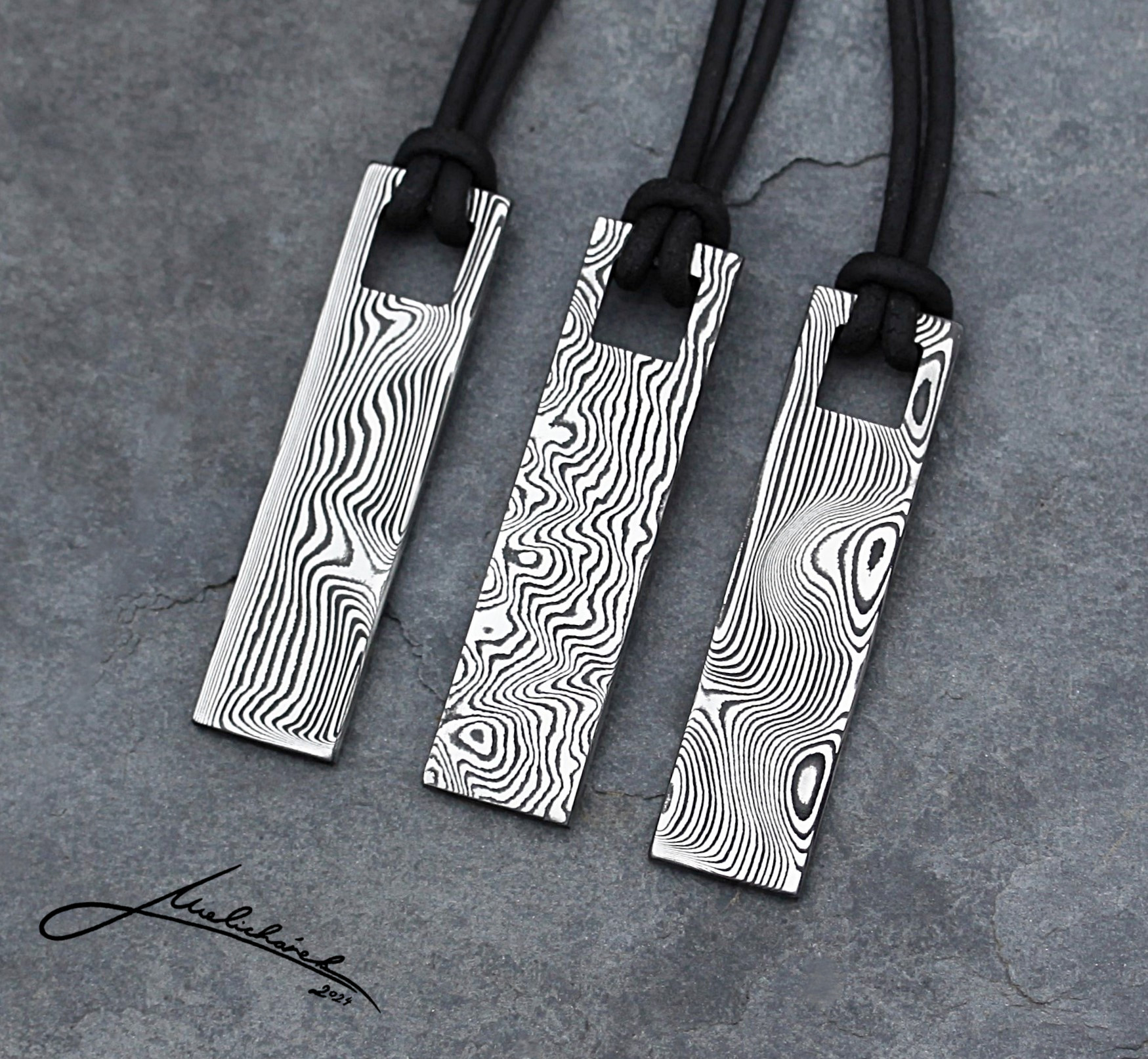 Není-li uvedeno výslovně jinak, jedná se vždy o nerezový šperkařský damašek. Ať už mé vlastní výroby, nebo švédský Damasteel. Více o tomto materiálu si můžete přečíst v sekci Výběr prstenu, kde se nerezovému damašku a jeho vlastnostem věnuji podrobněji.