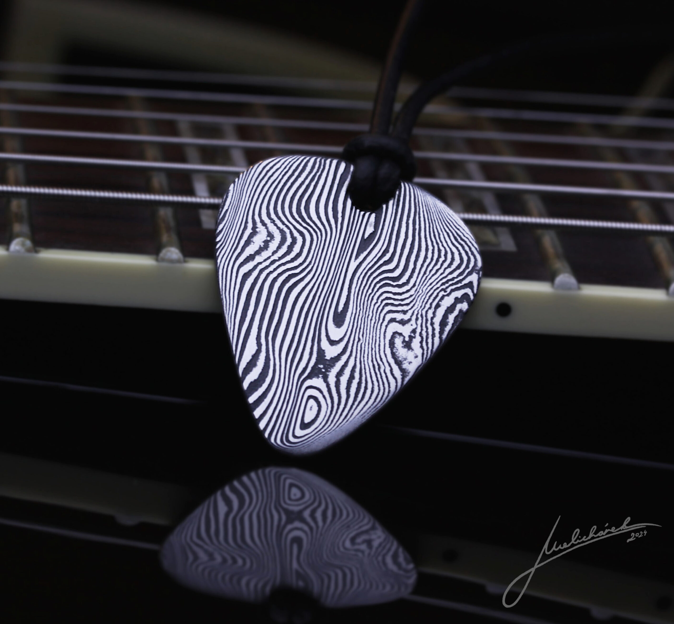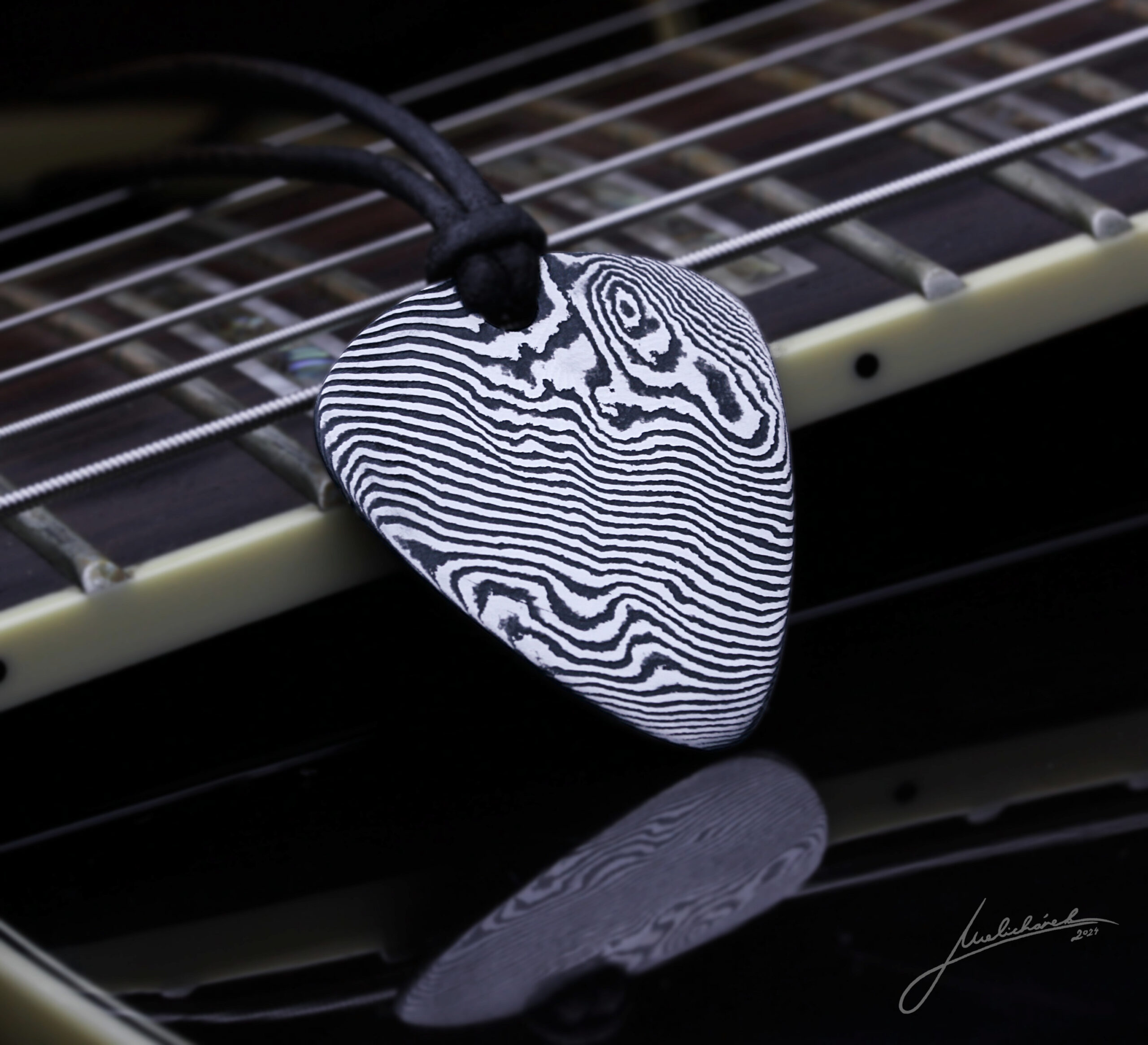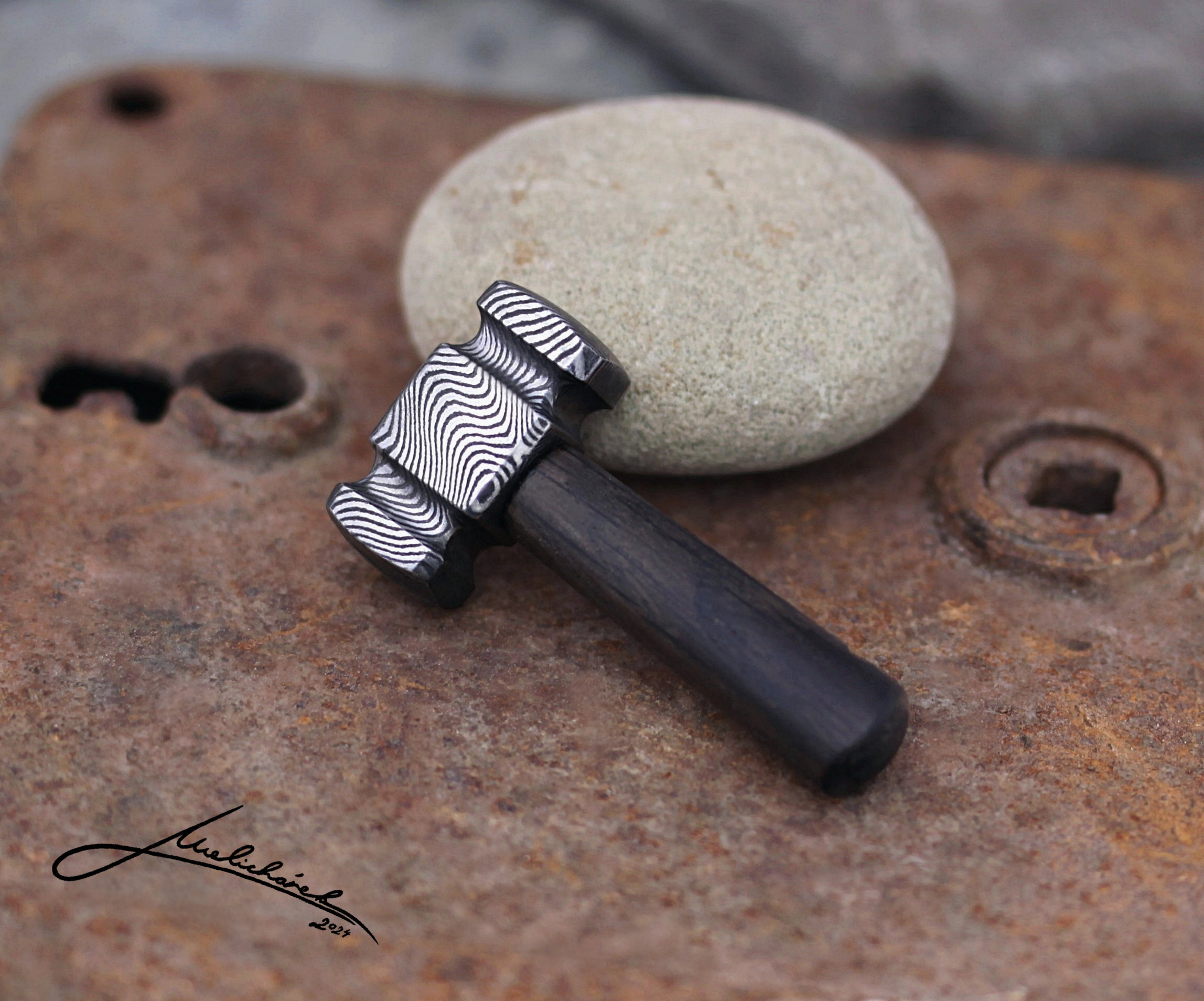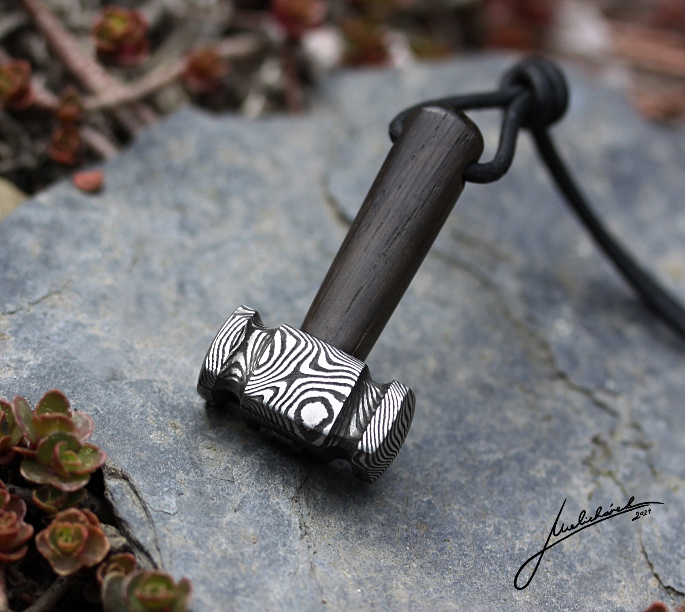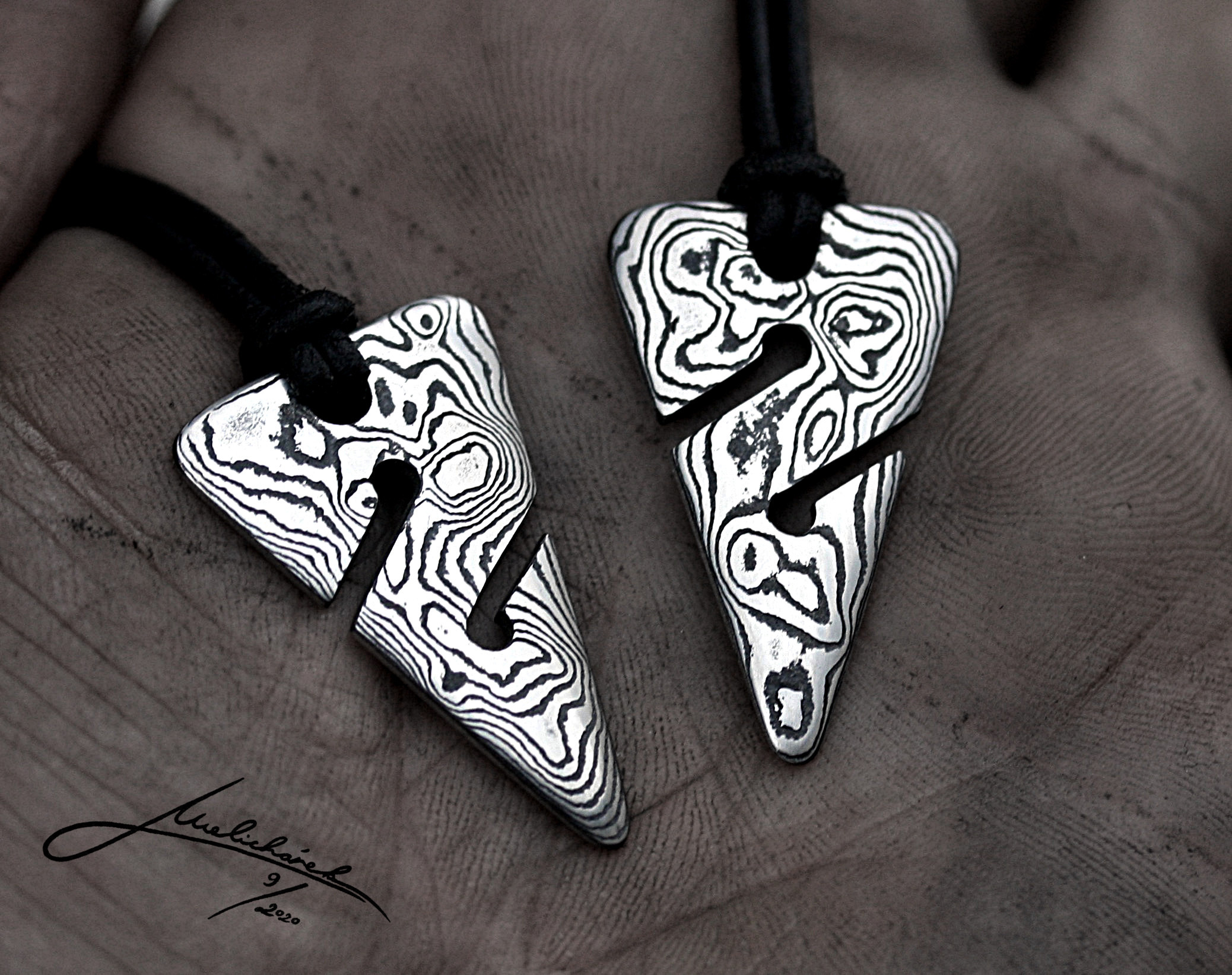 Přívěsek z nerezového damašku inspirovaný potápěčskou směrovou šipkou, která se používá při potápění v jeskyních nebo jiných nepřehledných prostorech. Pomůže Vám udržet správný směr na Vaší cestě 🙂