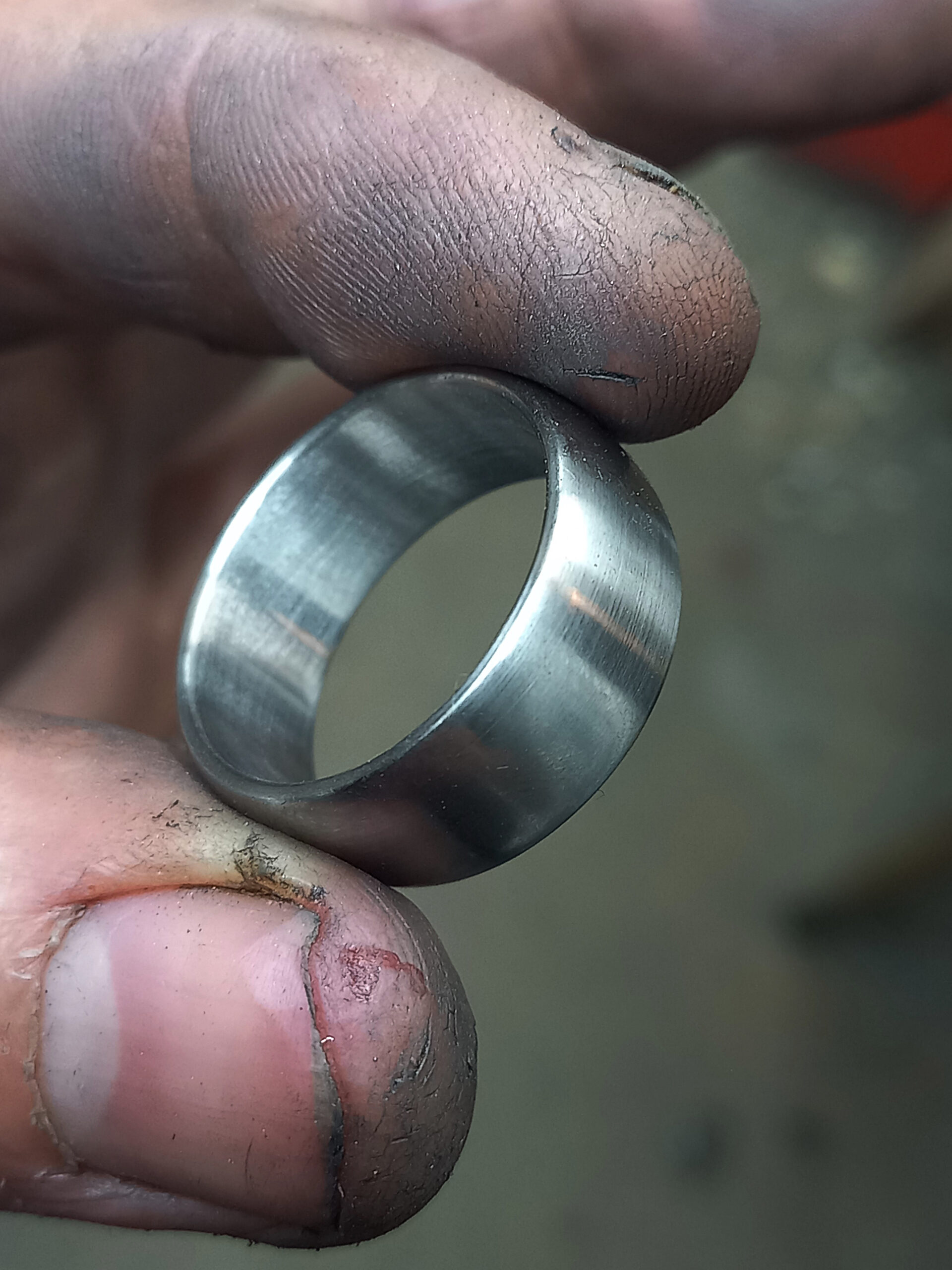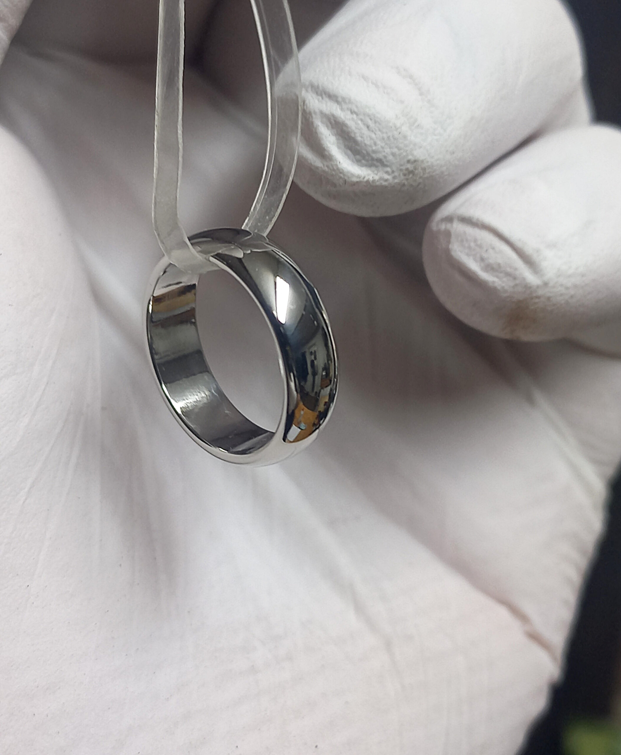 Velmi zjednodušeně řečeno, damašková ocel se skládá z jednotlivých „plátků“ různých druhů oceli, pevně spojených ve výhni do jednoho celku. Pro výrobu šperků se používá nerezová damašková ocel, která je v domácích podmínkách opravdu velmi obtížně vyrobitelná a proto si většina šperkařů oblíbila švédský materiál Damasteel. Ten používám pro výrobu prstenů i já, a to i přesto, že dokážu vyrobit i svůj vlastní nerezový damašek. Jedná se o špičku ve své kategorii, vyrobenou práškovou technologií, a to zajišťuje výsledný materiál bez jakýchkoli kazů. Zároveň se jedná o ocel s extrémní korozní odolností, která je ve většině případů považována za hypoalergenní. Pokud se chcete seznámit s tímto materiálem podrobněji, navštivte prosím sekci Výběr prstenu, kde rozebírám všechny aspekty nerezové damaškové oceli více do hloubky.
