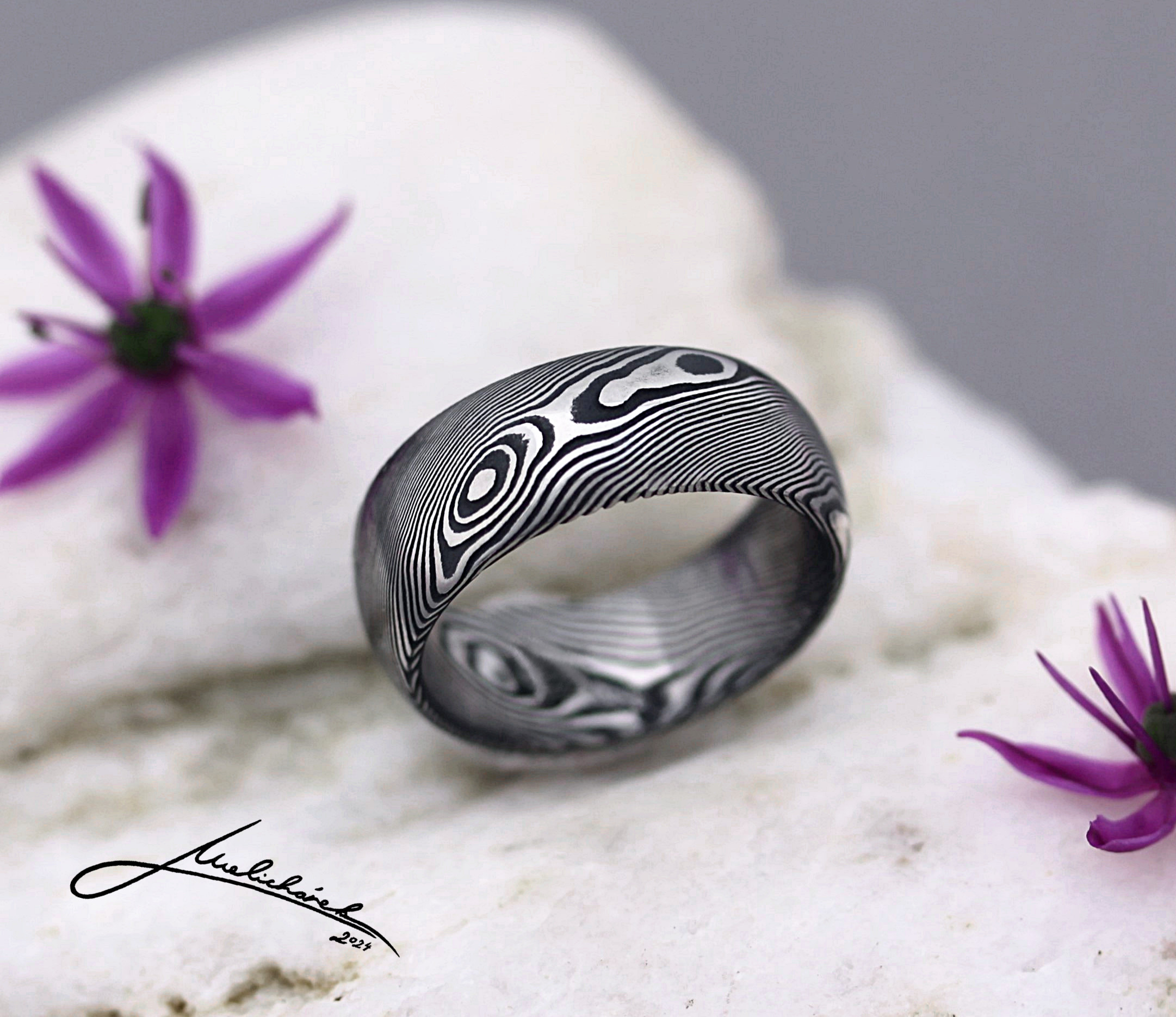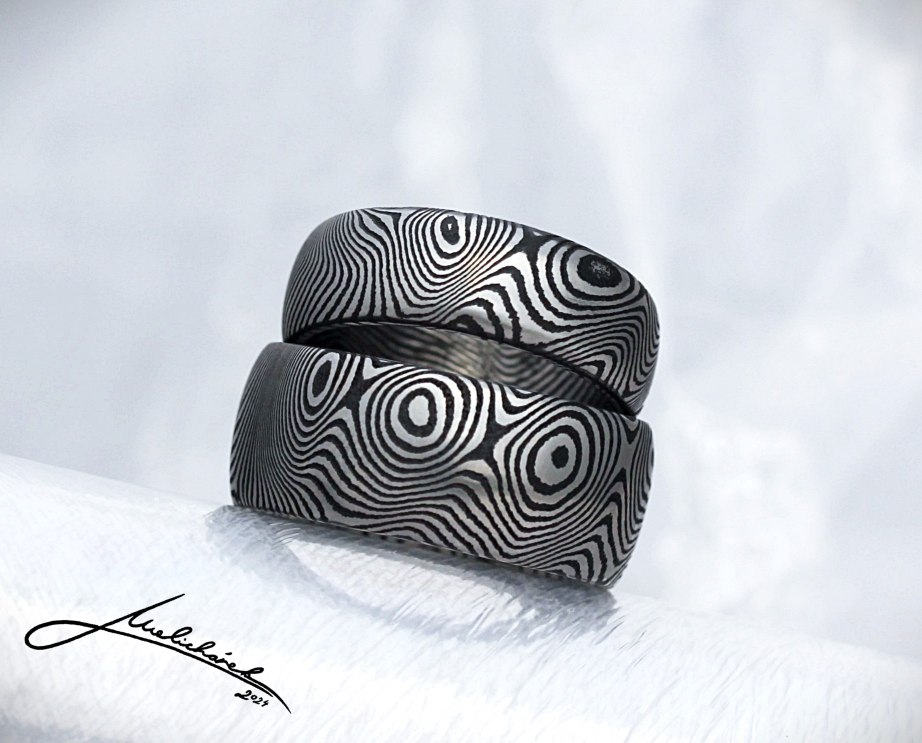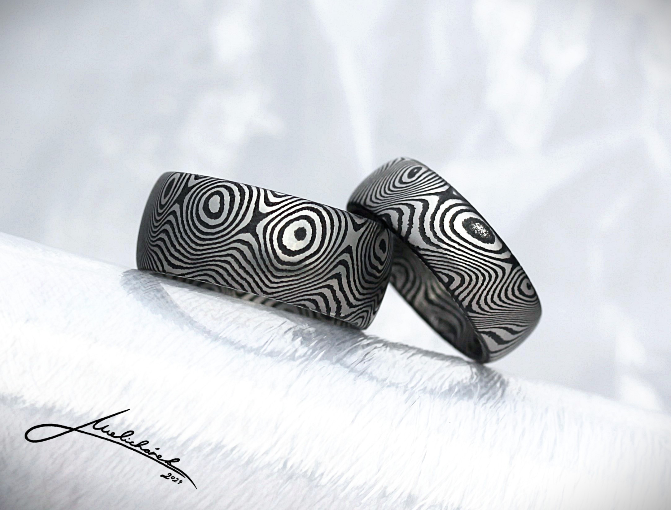 V této sekci si můžete prohlédnout různé damaškové vzory, stejně jako možné tvary prstenů. Mohu Vám dle dohody vytvořit prsten v jakékoli kombinaci tvaru a vzoru. Je ale pravda, že některé vzory se k určitým tvarům hodí lépe. Rád Vám případně s výběrem poradím a doporučím vhodnou kombinaci.