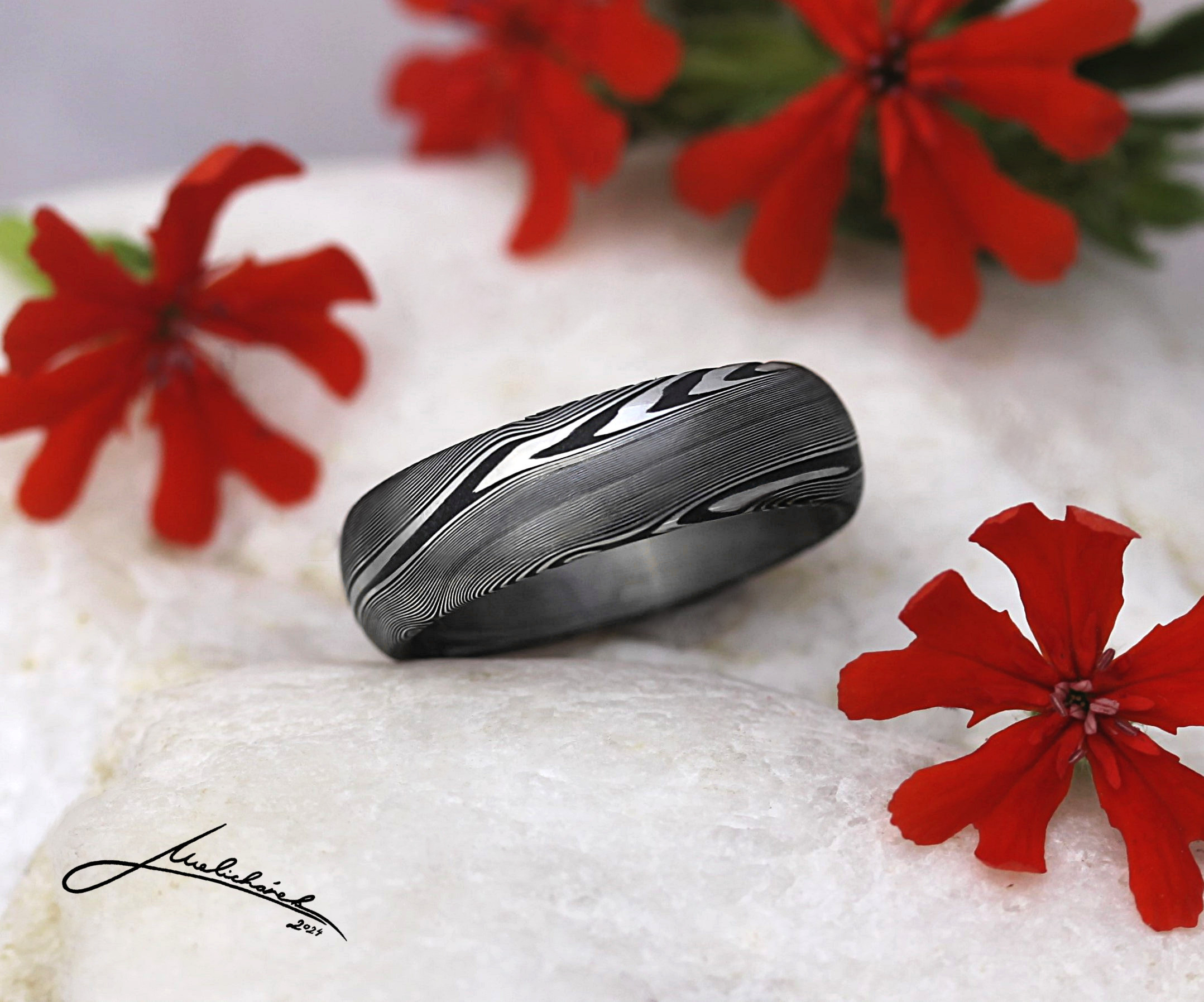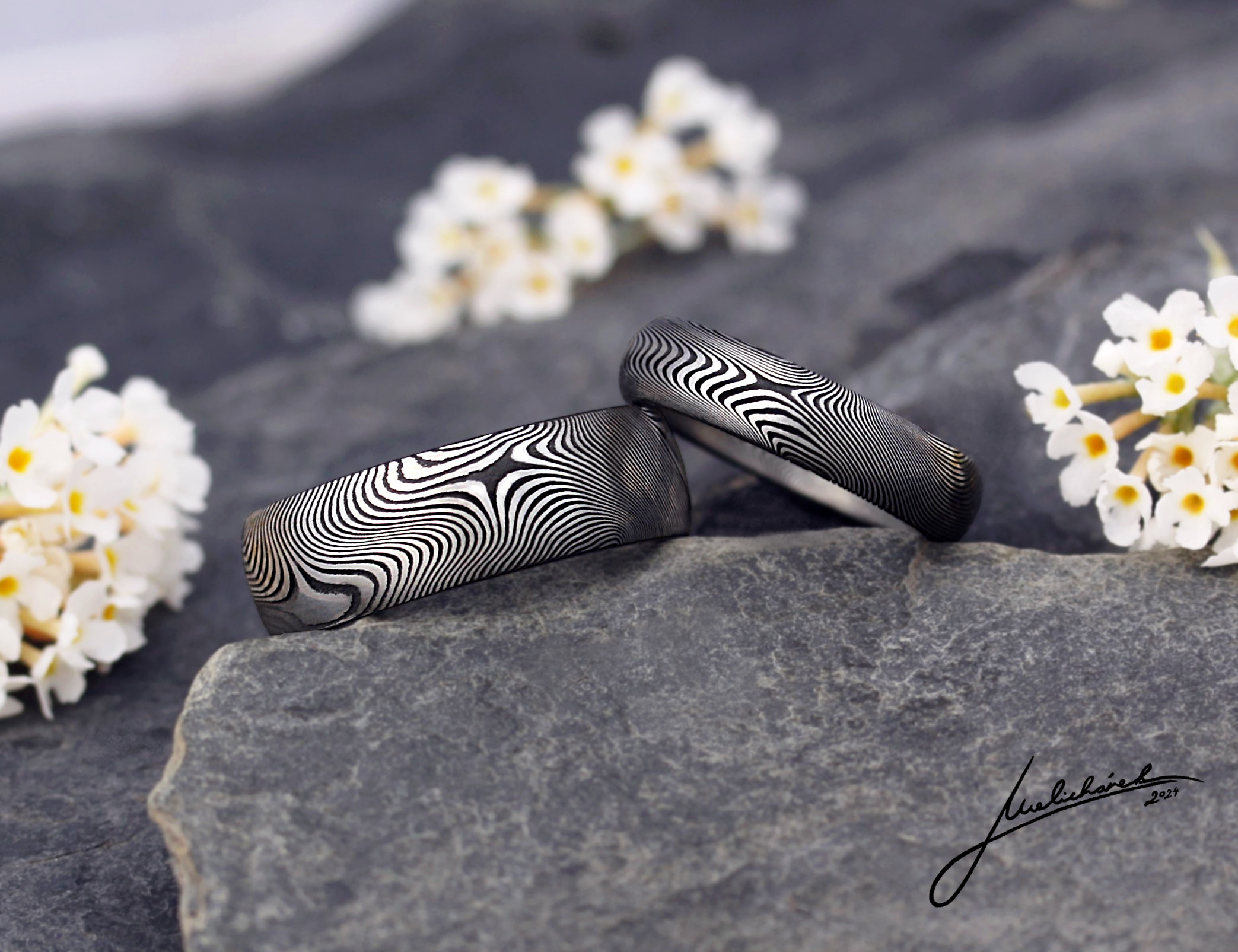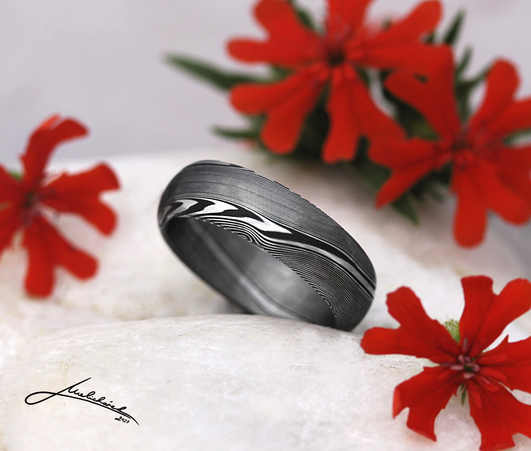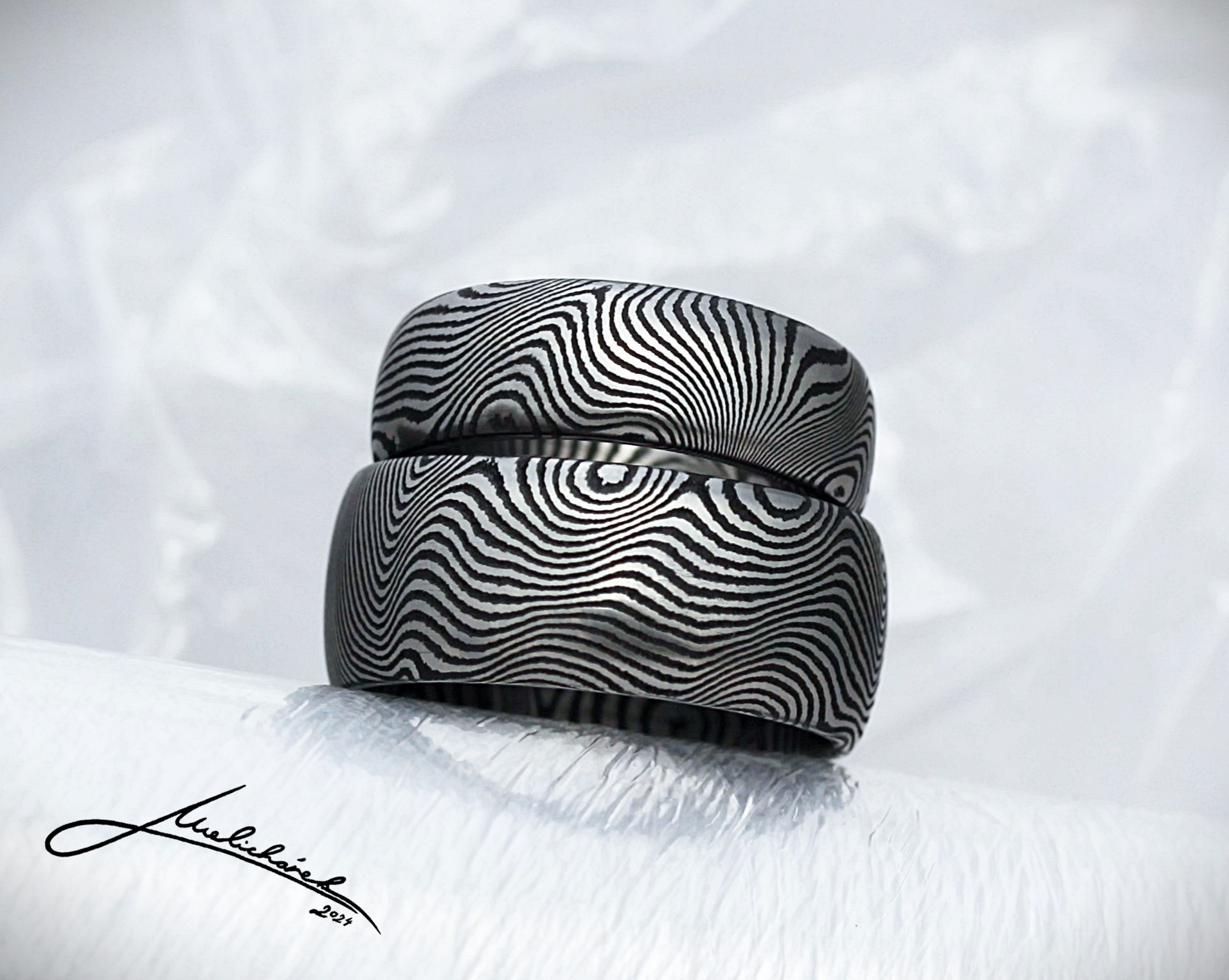 V této sekci si můžete prohlédnout různé damaškové vzory, stejně jako možné tvary prstenů. Mohu Vám dle dohody vytvořit prsten v jakékoli kombinaci tvaru a vzoru. Je ale pravda, že některé vzory se k určitým tvarům hodí lépe. Rád Vám případně s výběrem poradím a doporučím vhodnou kombinaci.