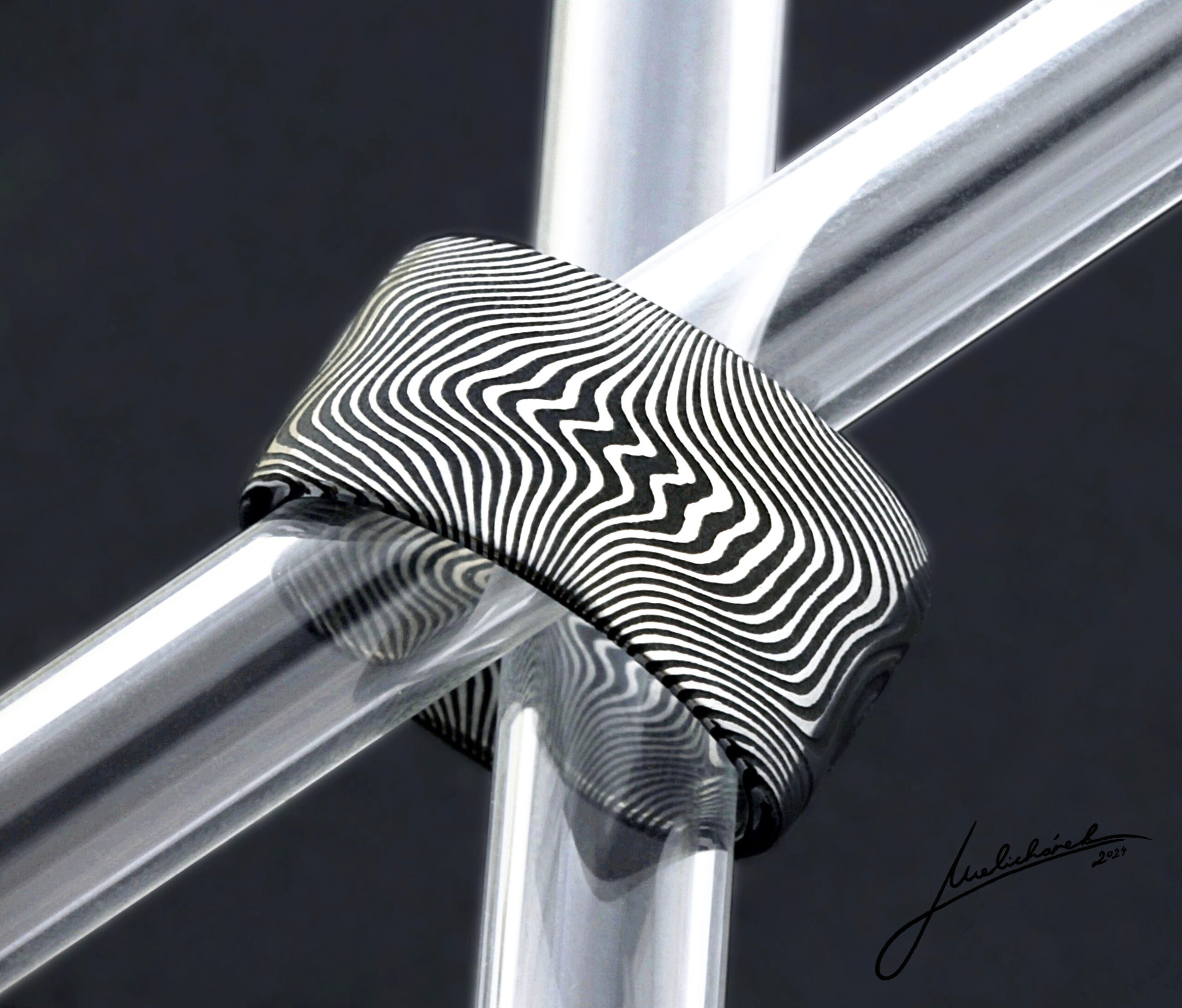 Dynamický vzor s „vlnami“  damaškové oceli