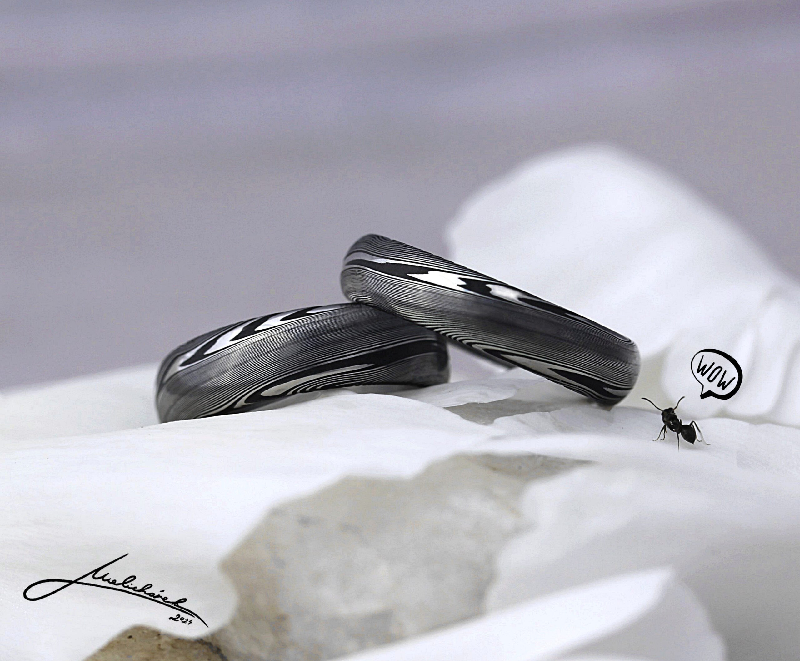 Jiskřivý vzor pro výrazné prsteny z Damasteelu