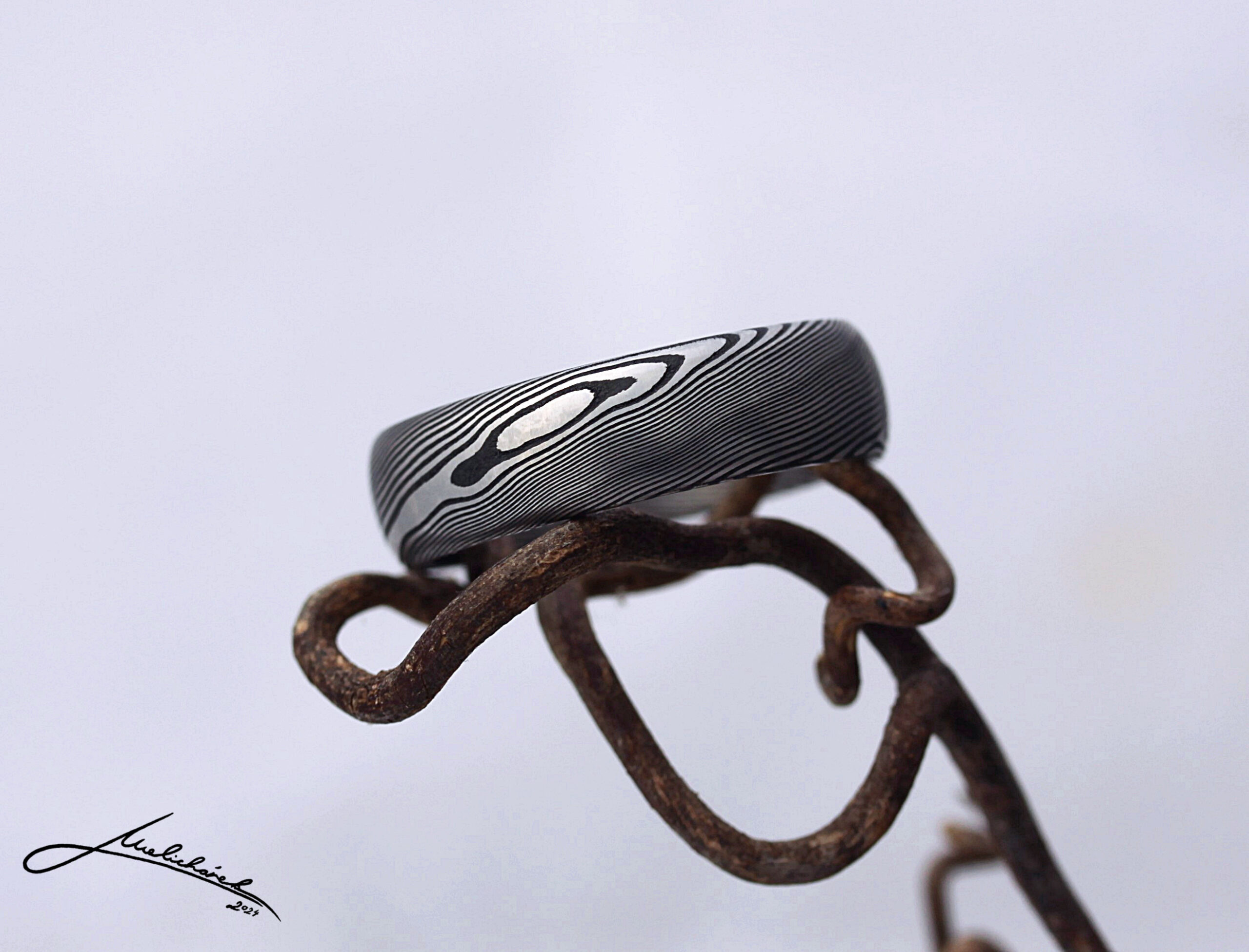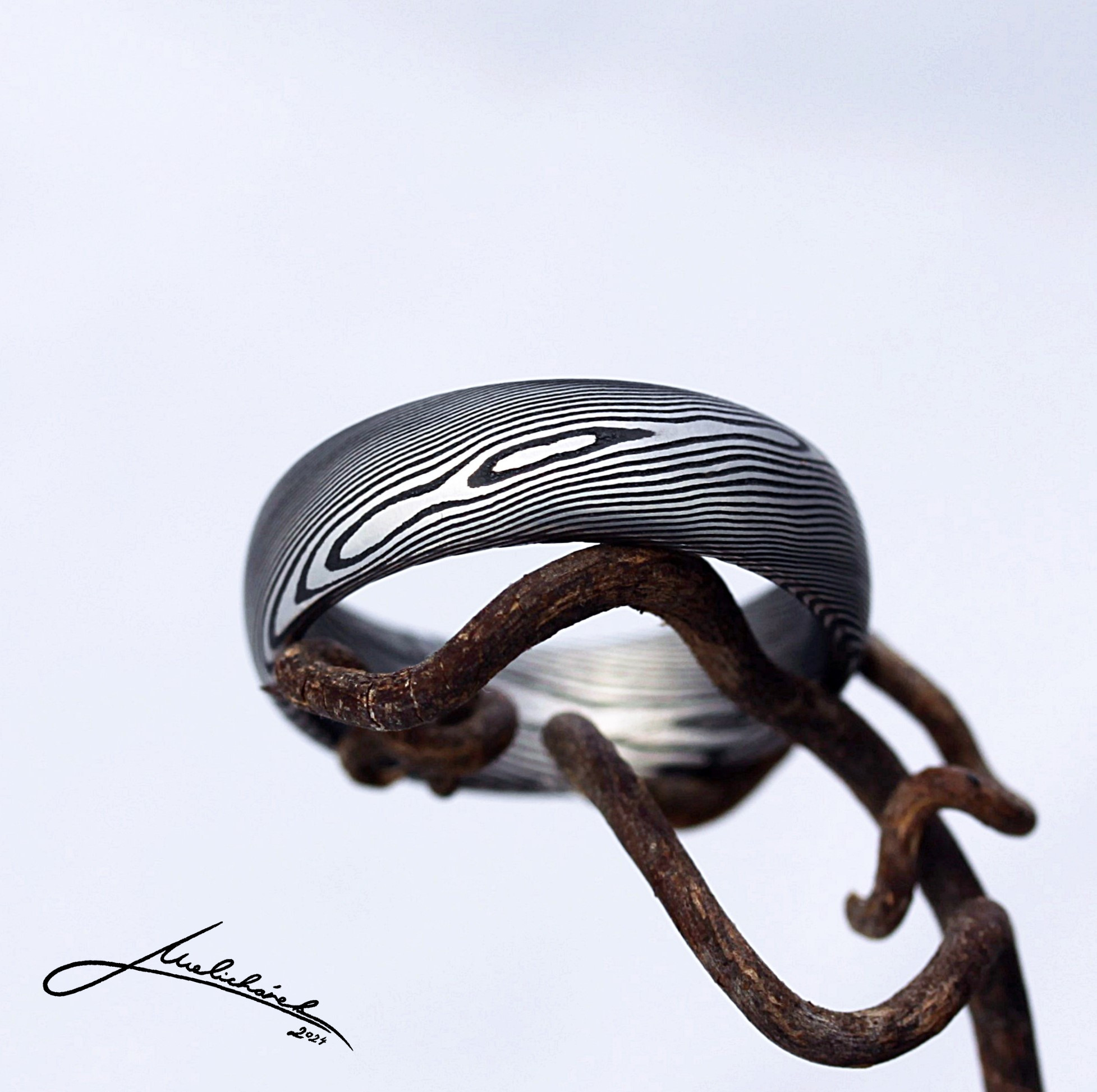 Kresba dřeva v damaškové oceli pro přírodní vzhled prstenu